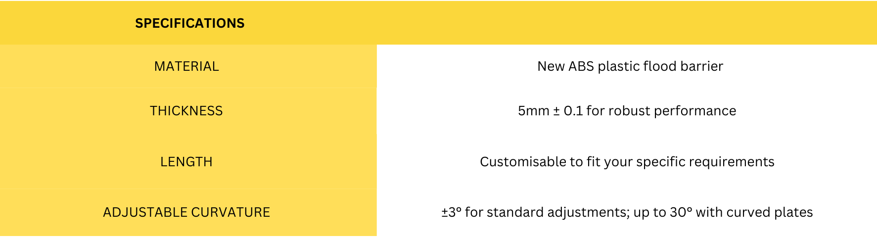 - L-shaped flood protection barrier uses water weight to increase stability. As water pressure increases, the barrier becomes more reliable, ensuring exceptional water-retaining performance.
